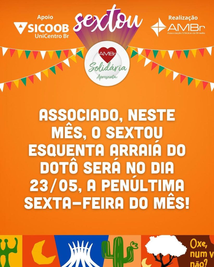 Neste mês, o nosso Sextou será antecipado: anota aí, dia 23/05, vamos esquentar o clima junino na penúltima sexta do mês!
