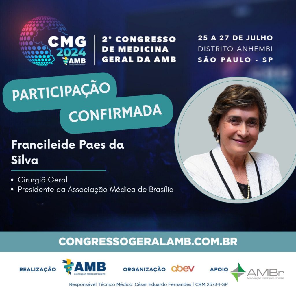 Dra. Francileide Paes, presidente da Associação Médica de Brasília AMBr, estará participando do 2º Congresso de Medicina Geral da AMB!